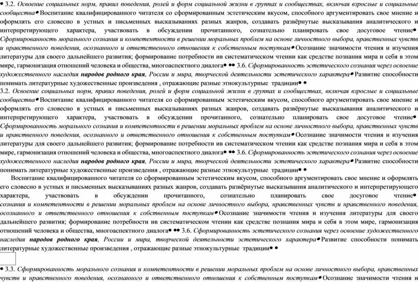 Воспитание квалифицированного читателя со сформированным эстетическим вкусом, способного аргументировать свое мнение и оформлять его словесно в устных и письменных высказываниях разных жанров, создавать развёрнутые высказывания аналитического и интерпретирующего характера, участвовать в обсуждении прочитанного, сознательно планировать свое досуговое чтение |