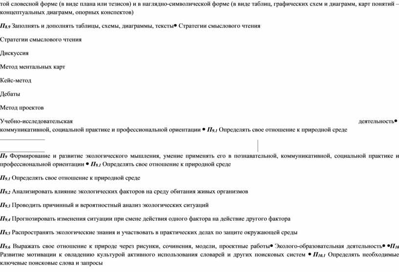 П9 Формирование и развитие экологического мышления, умение применять его в познавательной, коммуникативной, социальной практике и профессиональной ориентации |