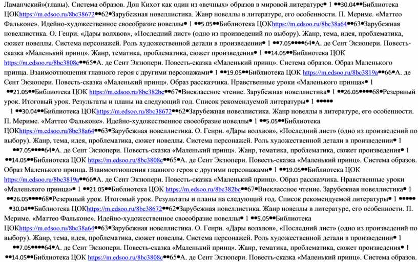 Зарубежная новеллистика (одно-два произведения по выбору). Например, П. Мериме. «Маттео Фальконе»; О. Генри. «Дары волхвов», «Последний лист».