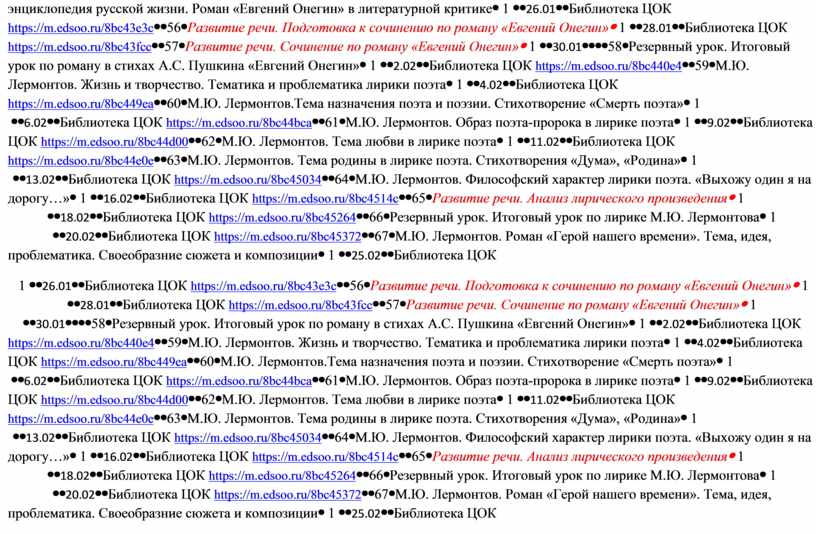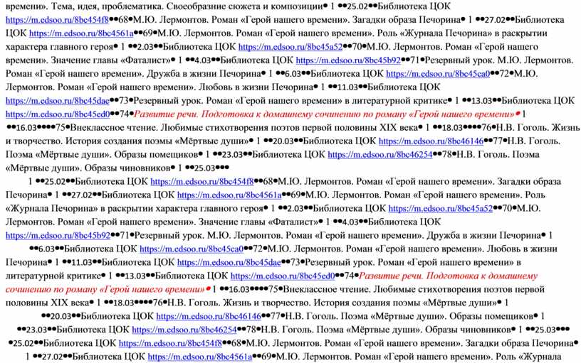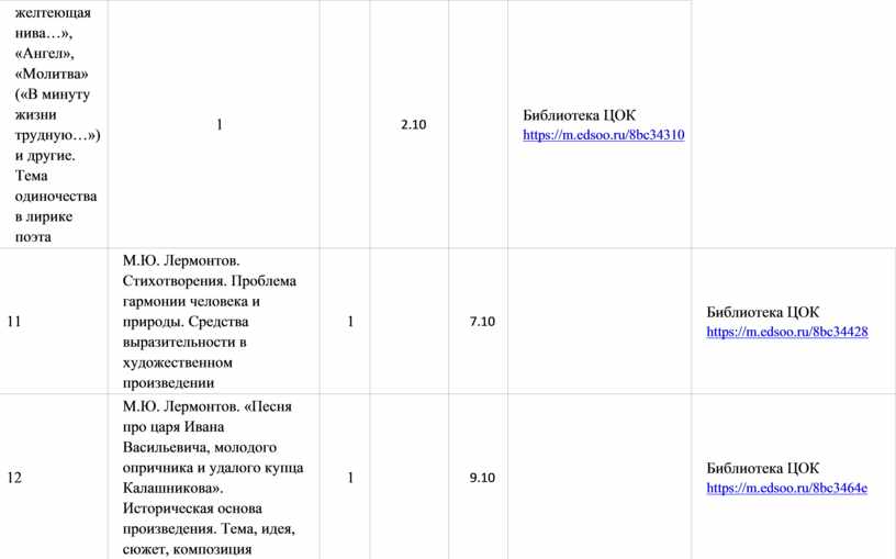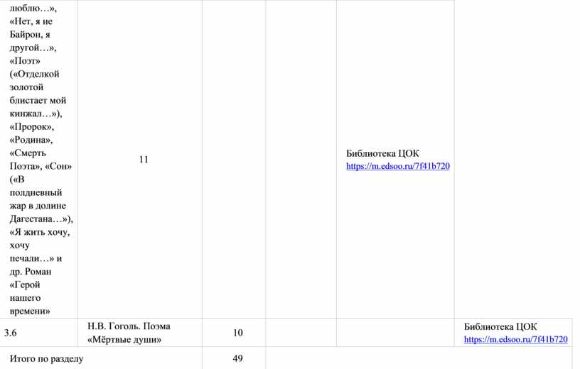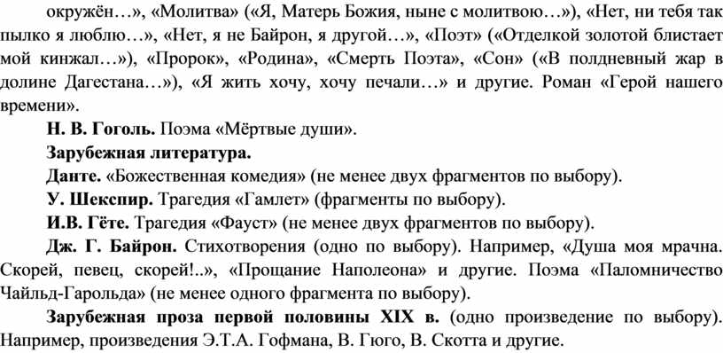 М. Ю. Лермонтов. Стихотворения (не менее пяти по выбору). Например, «Выхожу один я на дорогу…», «Дума», «И скучно и грустно», «Как часто, пёстрою толпою окружён…», «Молитва» («Я, Матерь Божия, ныне с молитвою…»), «Нет, ни тебя так пылко я люблю…», «Нет, я не Байрон, я другой…», «Поэт» («Отделкой золотой блистает мой кинжал…»), «Пророк», «Родина», «Смерть Поэта», «Сон» («В полдневный жар в долине Дагестана…»), «Я жить хочу, хочу печали…» и другие. Роман «Герой нашего времени».