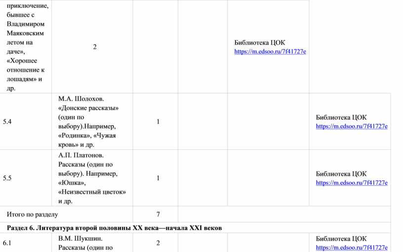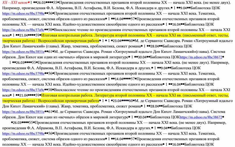 Произведения отечественных прозаиков второй половины XX – начала XXI века (не менее двух). Например, произведения Ф. А. Абрамова, В. П. Астафьева, В. И. Белова, Ф. А. Искандера и другие.