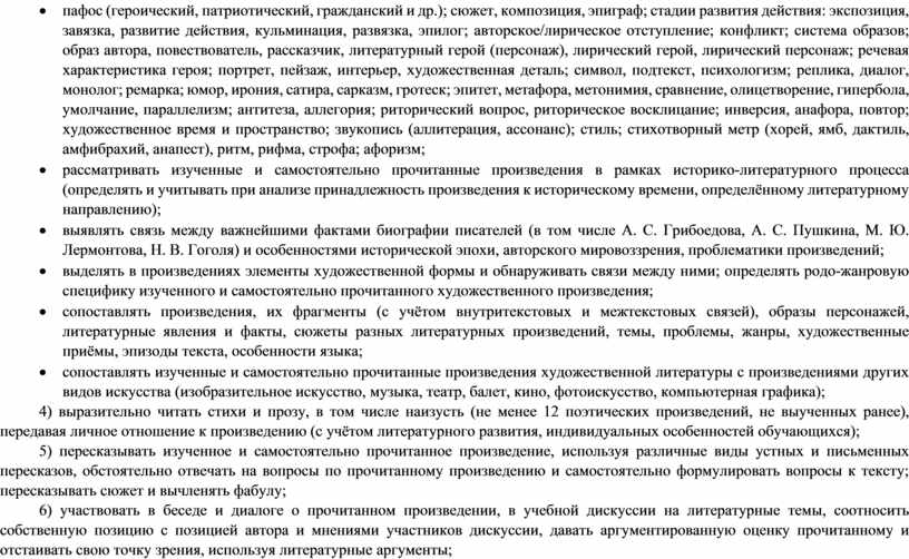 Задачи, связанные с воспитанием квалифицированного читателя, обладающего эстетическим вкусом, с формированием умений воспринимать, анализировать, критически оценивать и интерпретировать прочитанное, направлены на формирование у школьников системы знаний о литературе как искусстве слова, в том числе основных теоретико и историко-литературных знаний, необходимых для понимания, анализа и интерпретации художественных произведений, умения воспринимать их в историко-культурном контексте, сопоставлять с произведениями других видов искусства; развитие читательских умений, творческих способностей, эстетического вкуса. Эти задачи направлены на развитие умения выявлять проблематику произведений и их художественные особенности, комментировать авторскую позицию и выражать собственное отношение к прочитанному; воспринимать тексты художественных произведений в единстве формы и содержания, реализуя возможность их неоднозначного толкования в рамках достоверных интерпретаций; сопоставлять и сравнивать художественные произведения, их фрагменты, образы и проблемы как между собой, так и с произведениями других искусств; формировать представления о специфике литературы в ряду других искусств и об историко-литературном процессе; развивать умения поиска необходимой информации с использованием различных источников, владеть навыками их критической оценки.