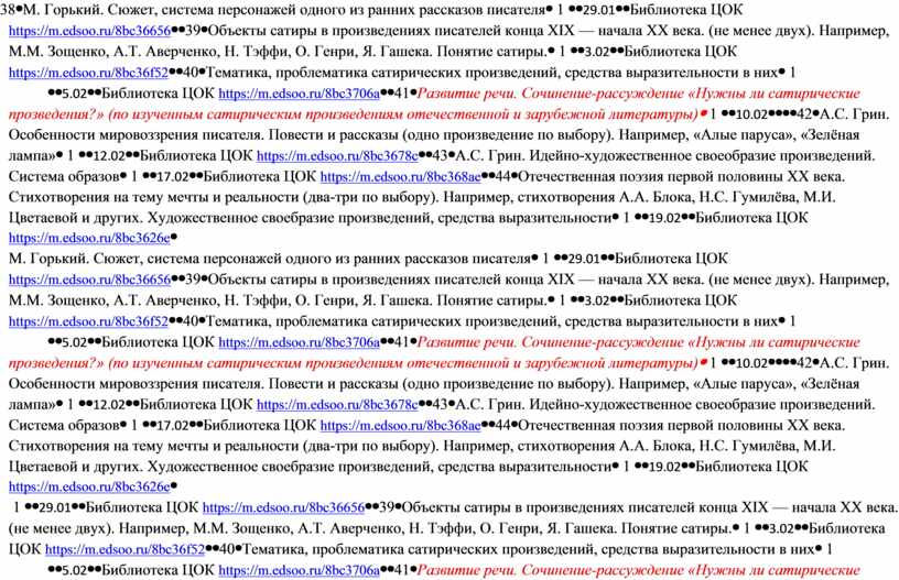 М. Горький. Ранние рассказы (одно произведение по выбору). Например, «Старуха Изергиль» (легенда о Данко), «Челкаш» и другие.