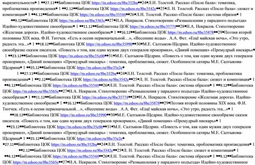 Н. А. Некрасов. Стихотворения (не менее двух). Например, «Размышления у парадного подъезда», «Железная дорога» и другие.