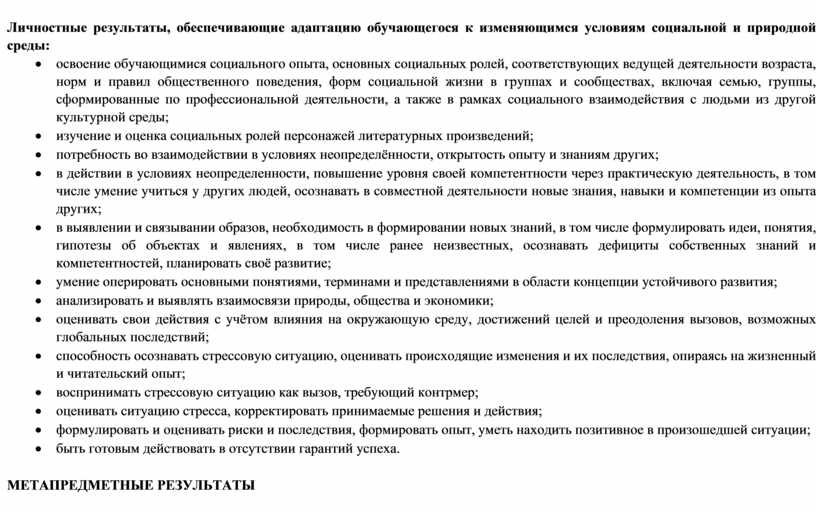 ЛИЧНОСТНЫЕ РЕЗУЛЬТАТЫ