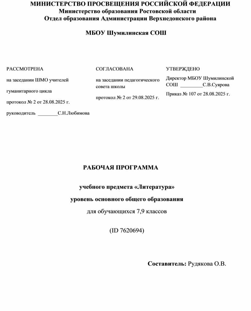 РАССМОТРЕНА на заседании ШМО учителей гуманитарного цикла протокол № 2 от 28.08.2025 г. руководитель ________С.Н.Любимова