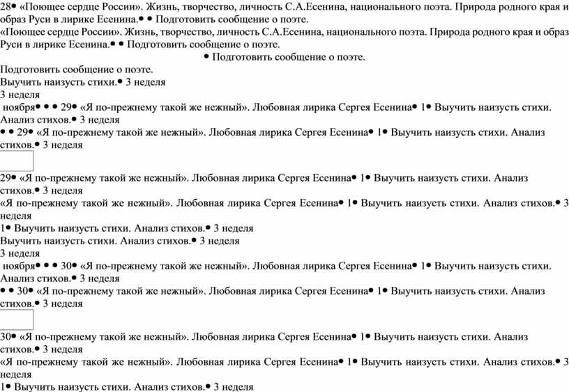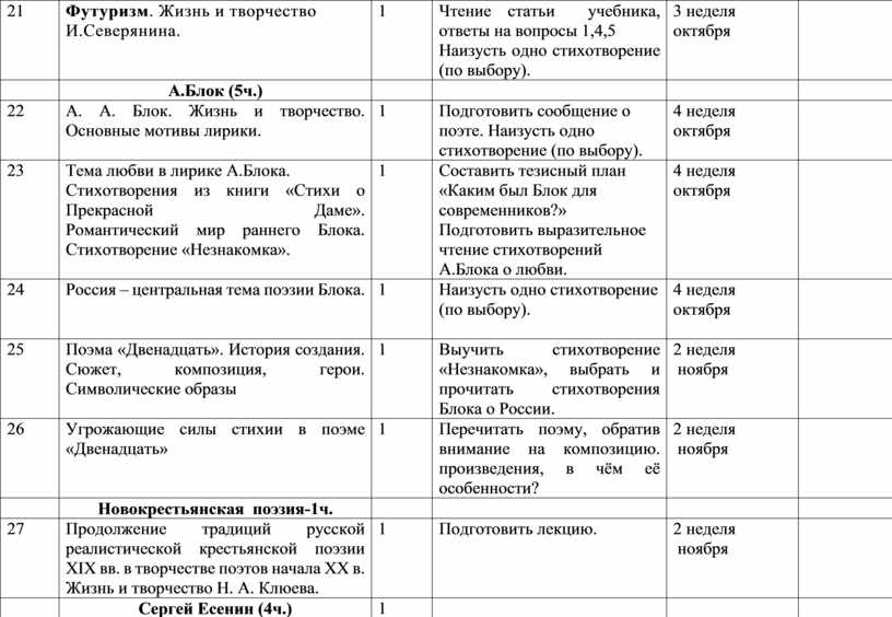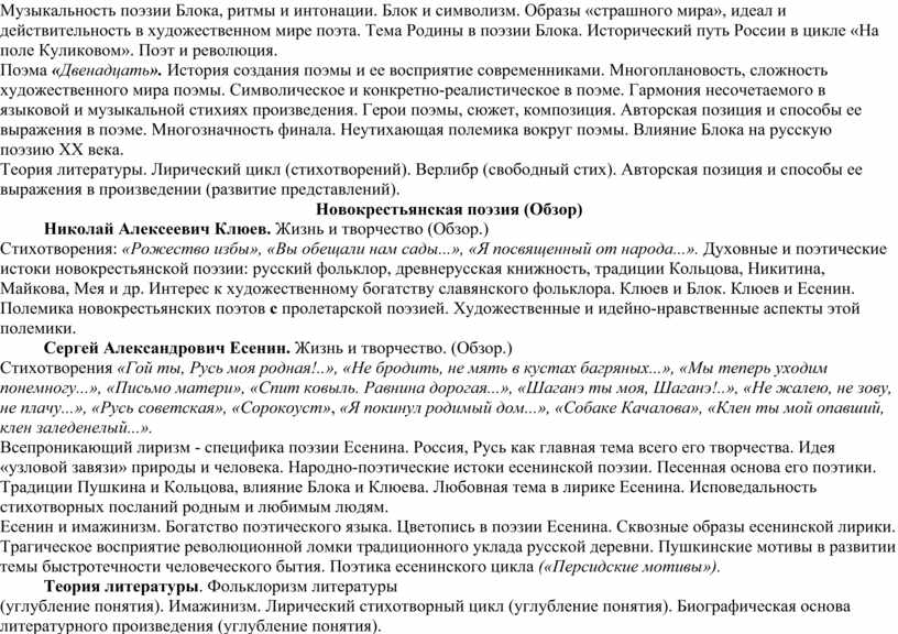 - основные факты жизни и творчества поэтов и писателей XX века;