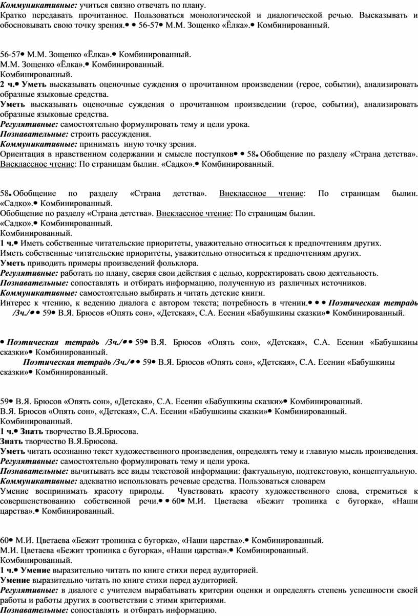Уметь различать жанры художественной литературы, работать с иллюстрациями, анализировать образные языковые средства. Регулятивные: самостоятельно формулировать тему и цели урока. В диалоге с учителем вырабатывать критерии оценки и определять степень успешности своей работы и работы других в соответствии с этими критериями Познавательные: извлекать информацию, представленную в разных формах. Строить рассуждения. Коммуникативные: учиться связно отвечать по плану. Кратко передавать прочитанное. Высказывать и обосновывать свою точку зрения. Принимать иную точку зрения. Чувство прекрасного – умение воспринимать красоту природы, бережно относиться ко всему живому; стремиться к совершенствованию собственной речи; любовь и уважение к Отечеству. |