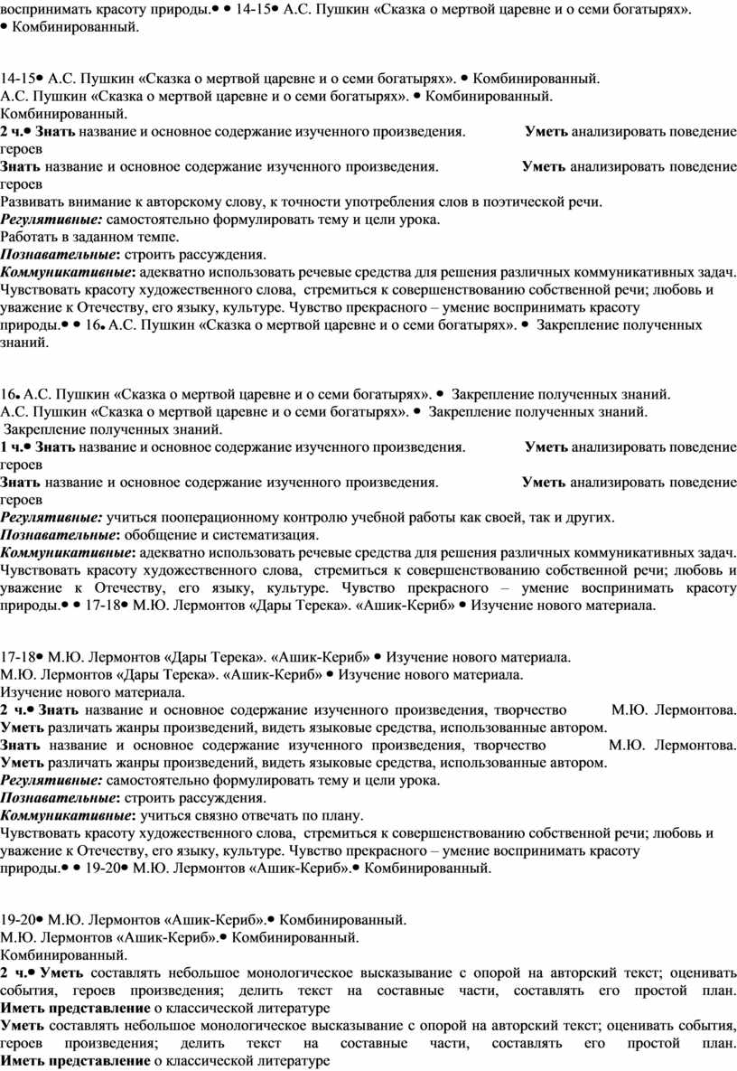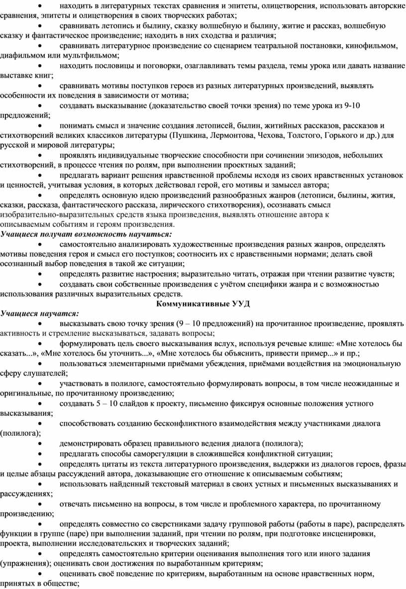 · понимать смысл и значение создания летописей, былин, житийных рассказов, рассказов и стихотворений великих классиков литературы (Пушкина, Лермонтова, Чехова, Толстого, Горького и др.) для русской и мировой литературы;