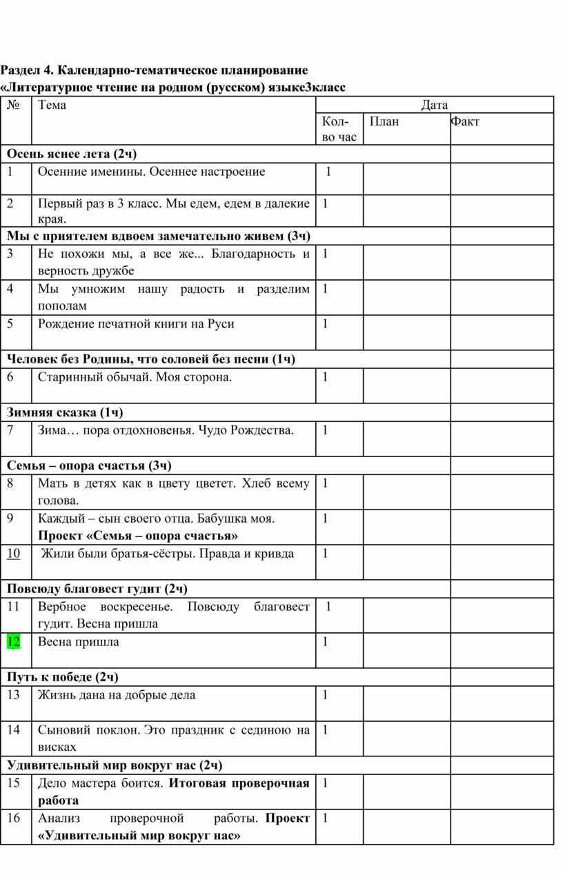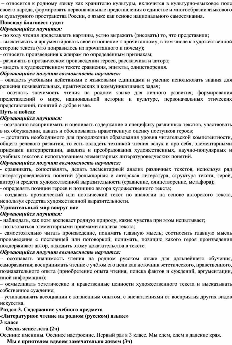 «Литературное чтение на родном (русском) языке» в 3 классе