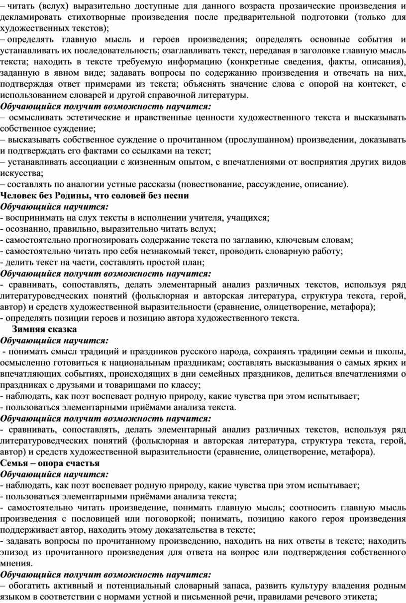 В задачи предмета «Литературное чтение на родном (русском) языке. 1–4 классы» входит: