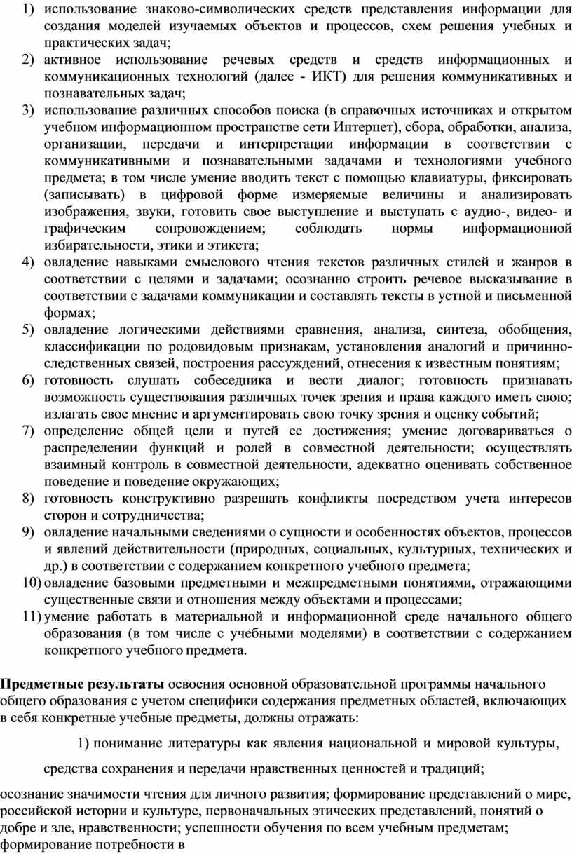 Предметные результаты освоения основной образовательной программы начального общего образования с учетом специфики содержания предметных областей, включающих в себя конкретные учебные предметы, должны отражать: