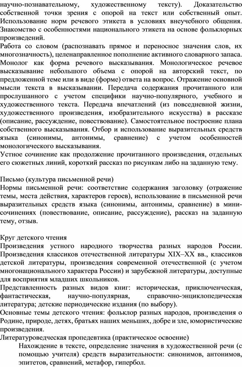 Содержание учебного предмета «Литературное чтение на русском языке»
