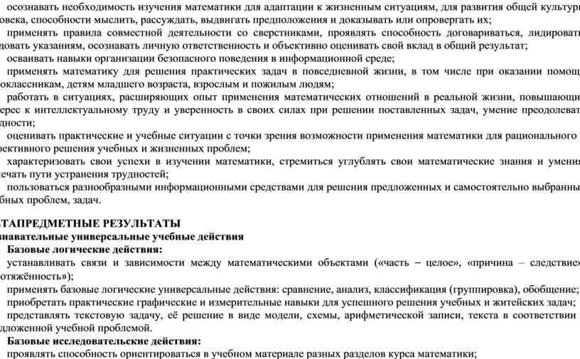 Планируемые результаты освоения программы по математике, представленные по годам обучения, отражают, в первую очередь, предметные достижения обучающегося. Также они включают отдельные результаты в области становления личностных качеств и метапредметных действий и умений, которые могут быть достигнуты на этом этапе обучения.