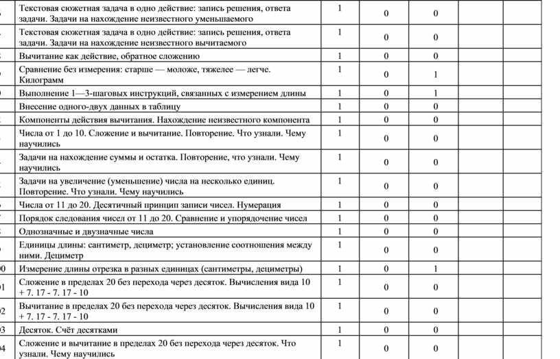 Таблицы. Повторение. Что узнали. Чему научились в 1 классе |
