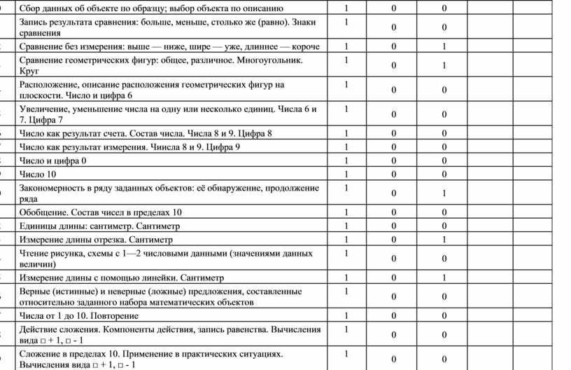 Числа от 1 до 9: различение, чтение, запись. Единица счёта. Десяток. Счёт предметов, запись результата цифрами. Число и цифра 0 при измерении, вычислении.