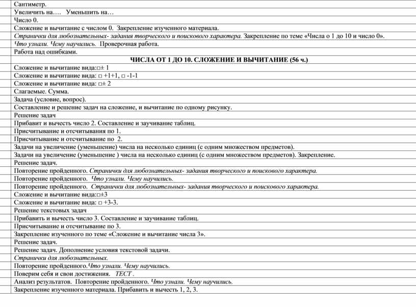 Начальный курс математики – курс интегрированный: в нем объединен арифметический, алгебраический и геометрический материал. При этом основу начального курса составляют представления о натуральном числе и нуле, о четырех арифметических действиях с целыми неотрицательными числами и важнейших их свойствах, а также основанное на этих знаниях осознанное и прочное усвоение приемов устных и письменных вычислений. Курс предполагает также формирование у детей пространственных представлений, ознакомление учащихся с различными геометрическими фигурами и некоторыми их свойствами, с простейшими чертежными и измерительными приборами.