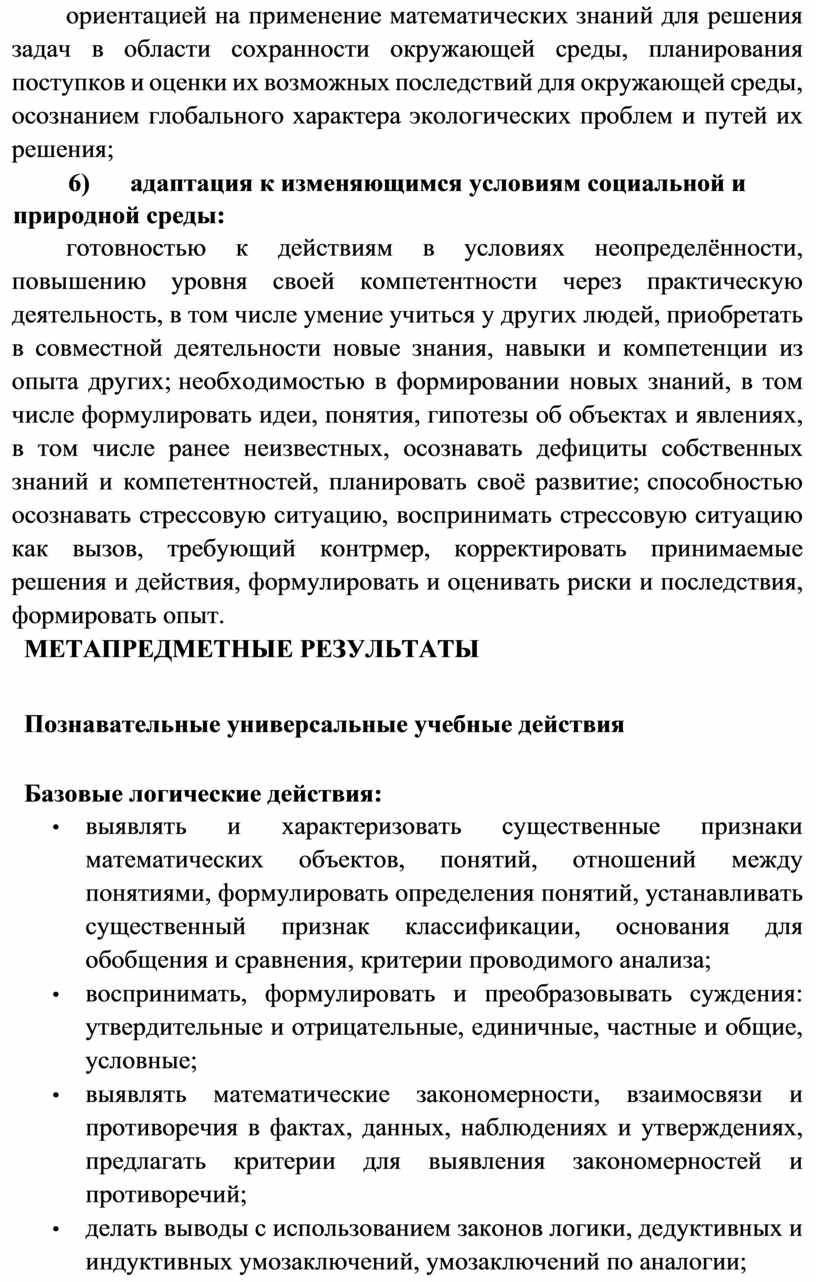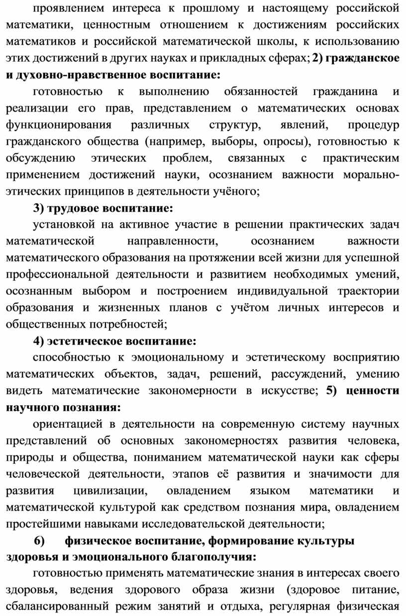 проявлением интереса к прошлому и настоящему российской математики, ценностным отношением к достижениям российских математиков и российской математической школы, к использованию этих достижений в других науках и прикладных сферах; 2) гражданское и духовно-нравственное воспитание: