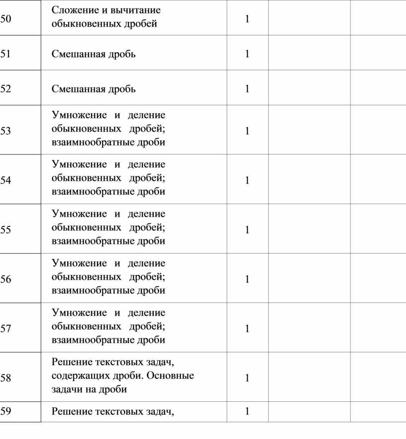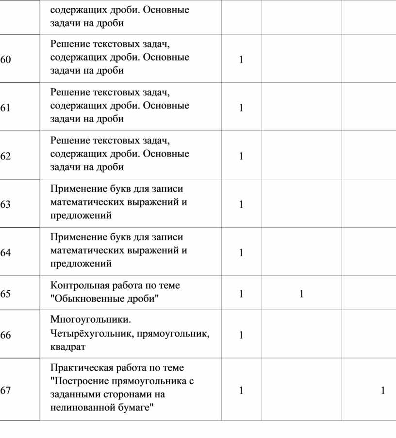 Обыкновенная дробь, основное свойство дроби, сокращение дробей. Сравнение и упорядочивание дробей. Решение задач на нахождение части от целого и целого по его части. Дробное число как результат деления. Представление десятичной дроби в виде обыкновенной дроби и возможность представления обыкновенной дроби в виде десятичной. Десятичные дроби и метрическая система мер. Арифметические действия и числовые выражения с обыкновенными и десятичными дробями.