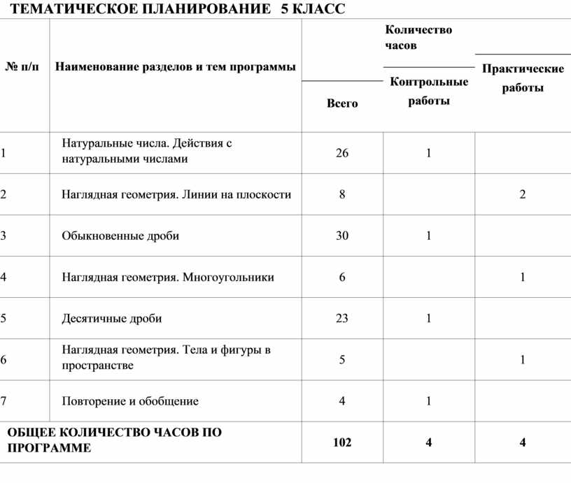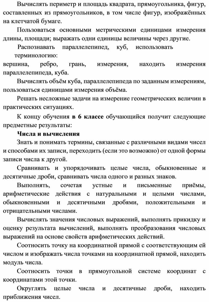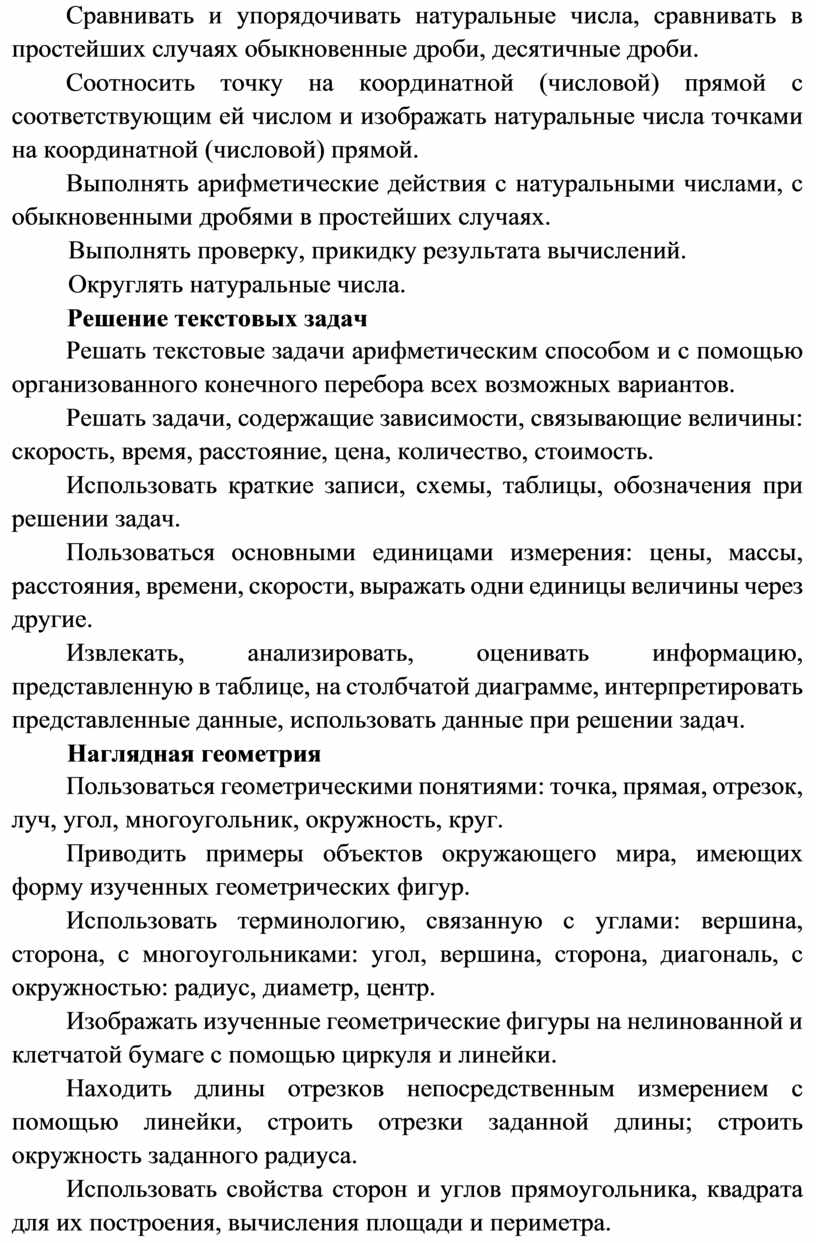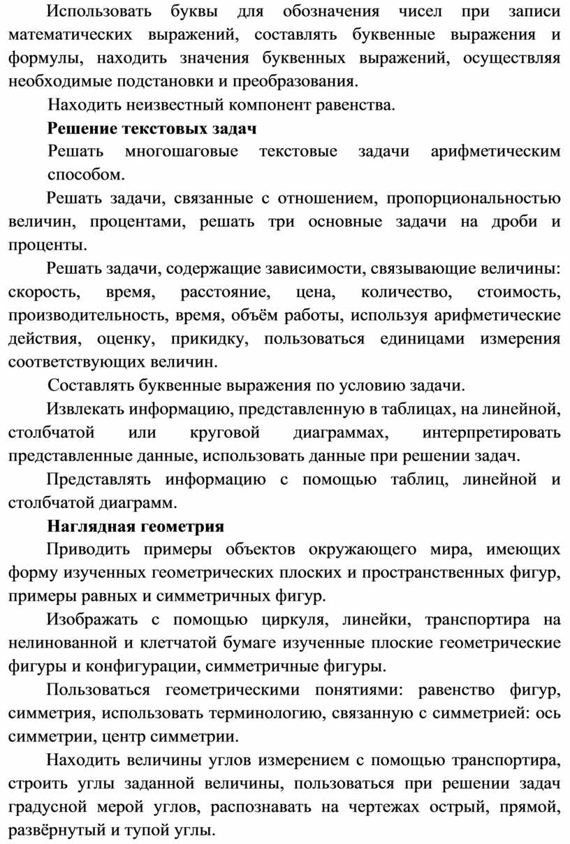 Согласно учебному плану в 5–6 классах изучается интегрированный предмет «Математика», который включает арифметический материал и наглядную геометрию, а также пропедевтические сведения из алгебры, элементы логики и начала описательной статистики.