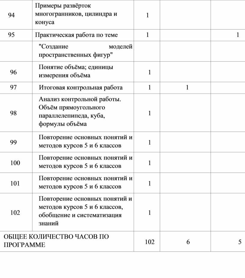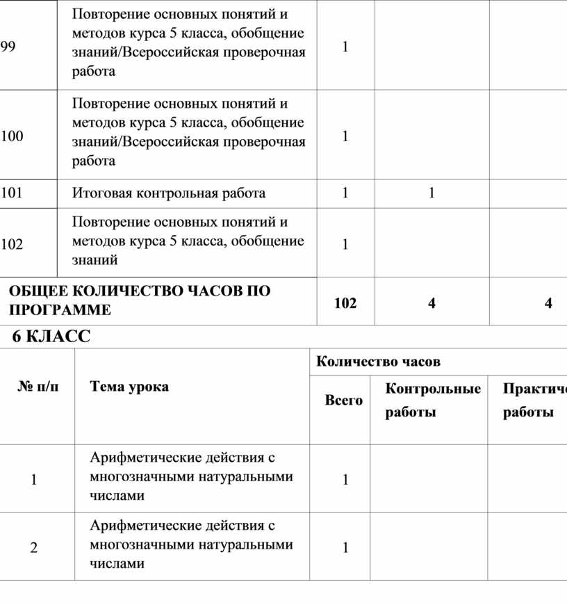 в 5 классе – 102 часа (3 часа в неделю); в 6 классе – 102 часа (3 часа в неделю).