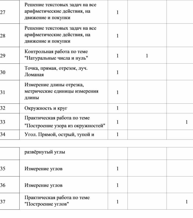 Измерение и построение углов с помощью транспортира. Виды треугольников: остроугольный, прямоугольный, тупоугольный, равнобедренный, равносторонний. Четырёхугольник, примеры четырёхугольников. Прямоугольник, квадрат: использование свойств сторон, углов, диагоналей. Изображение геометрических фигур на нелинованной бумаге с использованием циркуля, линейки, угольника, транспортира. Построения на клетчатой бумаге.