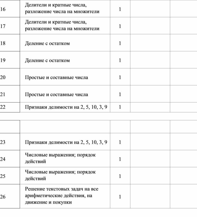 Делители и кратные числа, разложение на множители. Простые и составные числа. Признаки делимости на 2, 5, 10, 3, 9. Деление с остатком.
