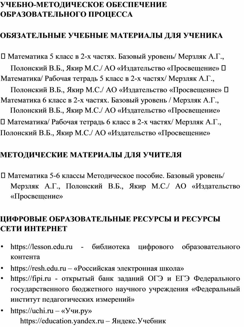 Полонский В.Б., Якир М.С./ АО «Издательство «Просвещение» Математика 6 класс в 2-х частях. Базовый уровень / Мерзляк А.Г.,