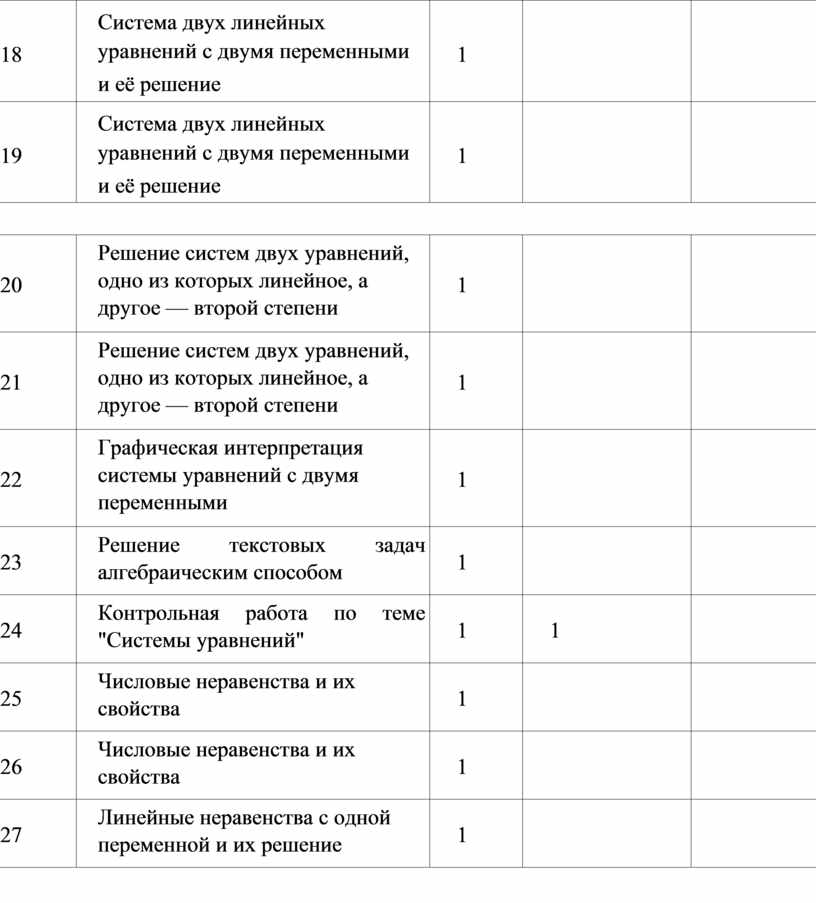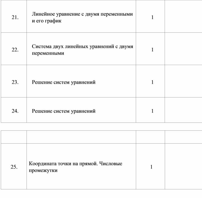Уравнение с двумя переменными и его график. Решение систем двух линейных уравнений с двумя переменными. Решение систем двух уравнений, одно из которых линейное, а другое – второй степени. Графическая интерпретация системы уравнений с двумя переменными.