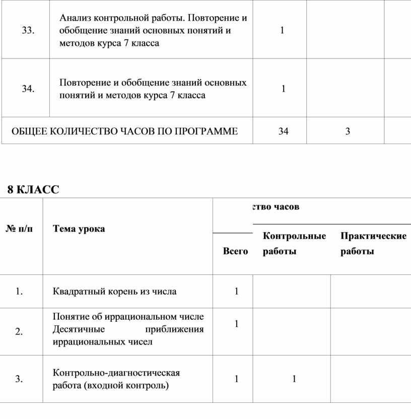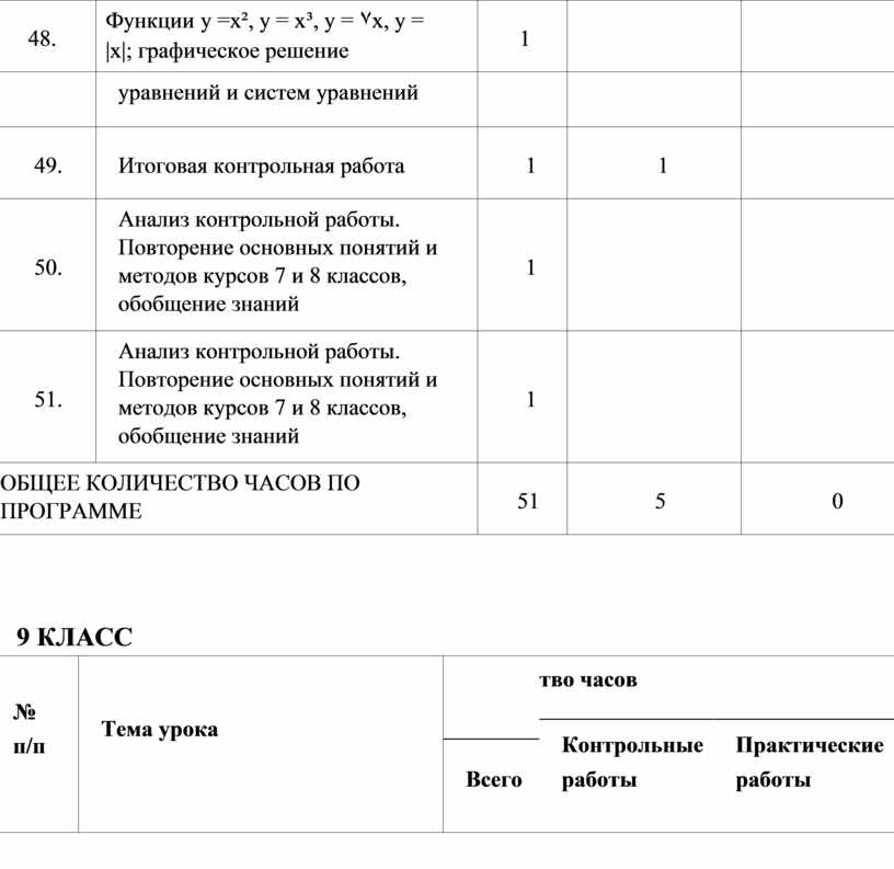 На изучение учебного курса «Алгебра» отводится 153 часа: в 7 классе – 34 часа (1 час в неделю), в 8 классе – 51 часа (1,5 часа в неделю), в 9 классе – 68 часов (2 часа в неделю).