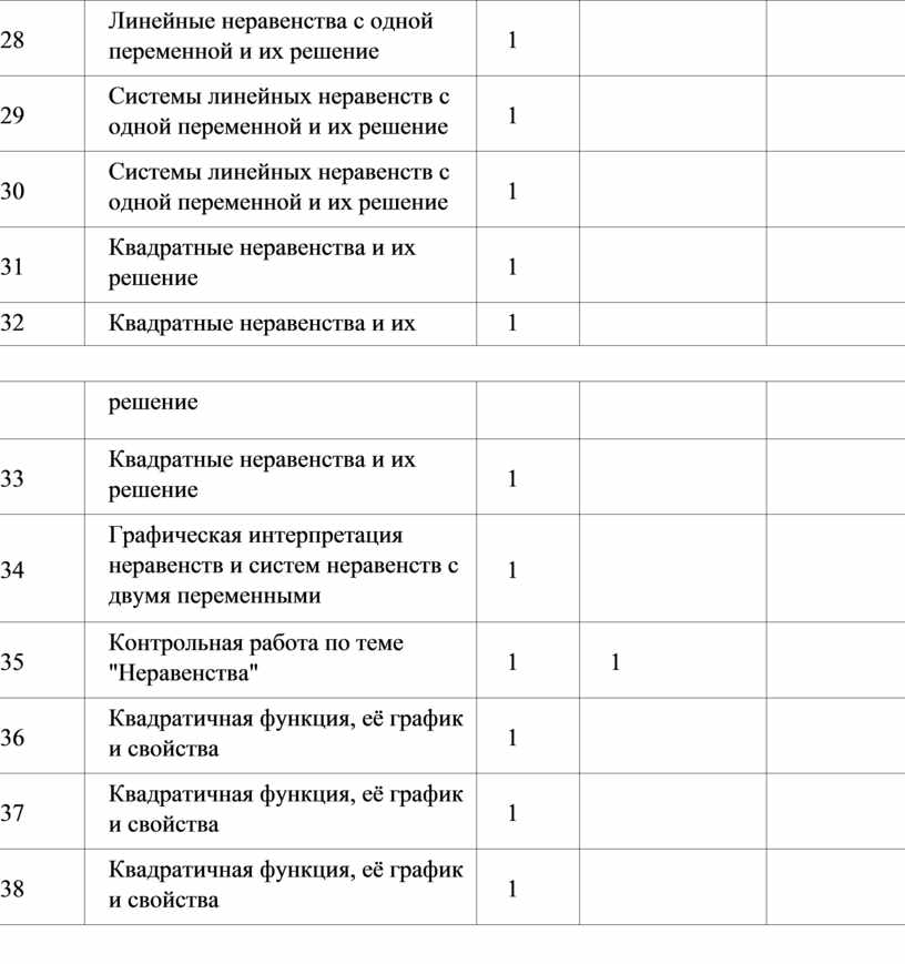 Решение линейных неравенств с одной переменной. Решение систем линейных неравенств с одной переменной. Квадратные неравенства. Графическая интерпретация неравенств и систем неравенств с двумя переменными.