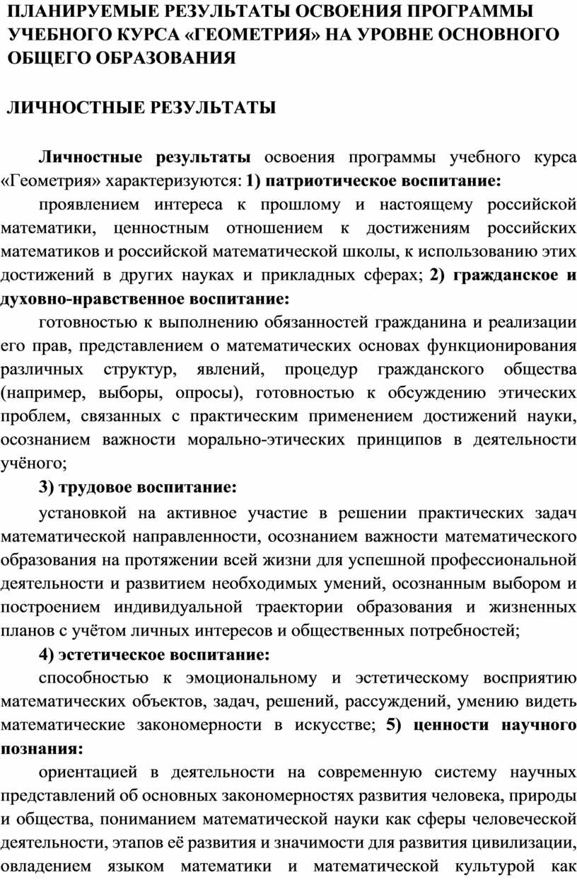 ПЛАНИРУЕМЫЕ РЕЗУЛЬТАТЫ ОСВОЕНИЯ ПРОГРАММЫ УЧЕБНОГО