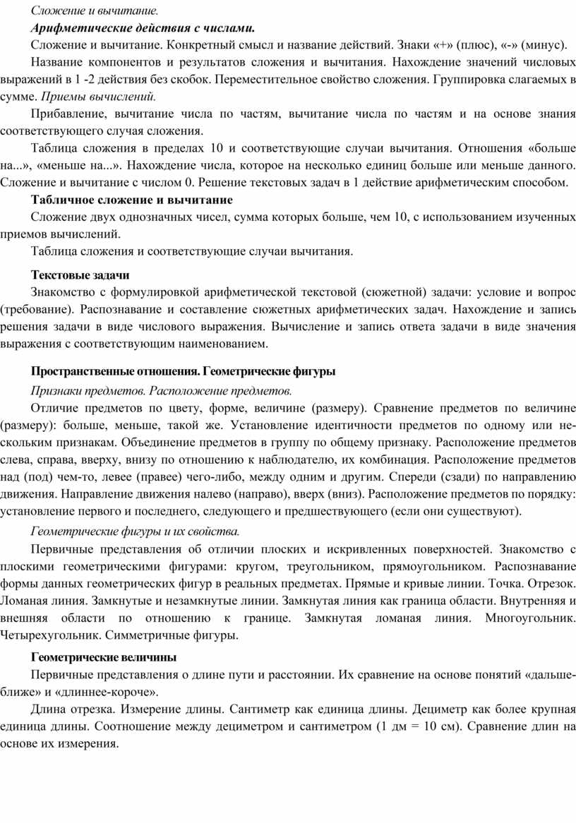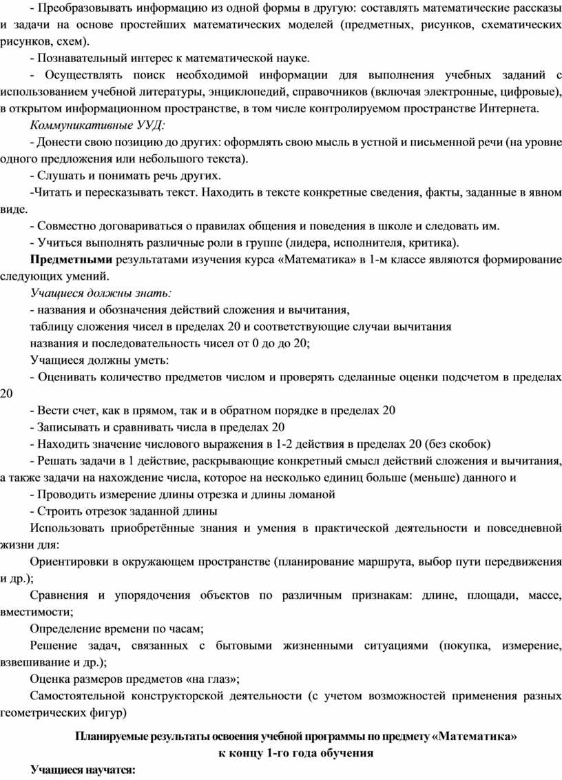 Предметными результатами изучения курса «Математика» в 1-м классе являются формирование следующих умений.
