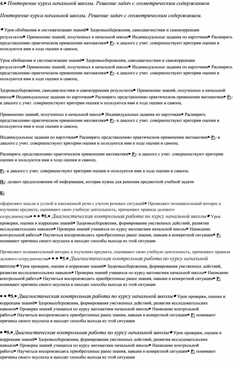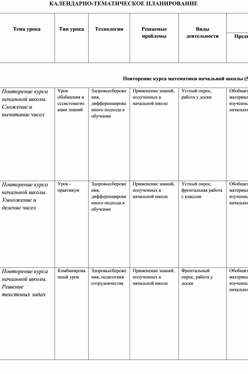 Повторение, обобщение и систематизация материала, изученного в начальной школе