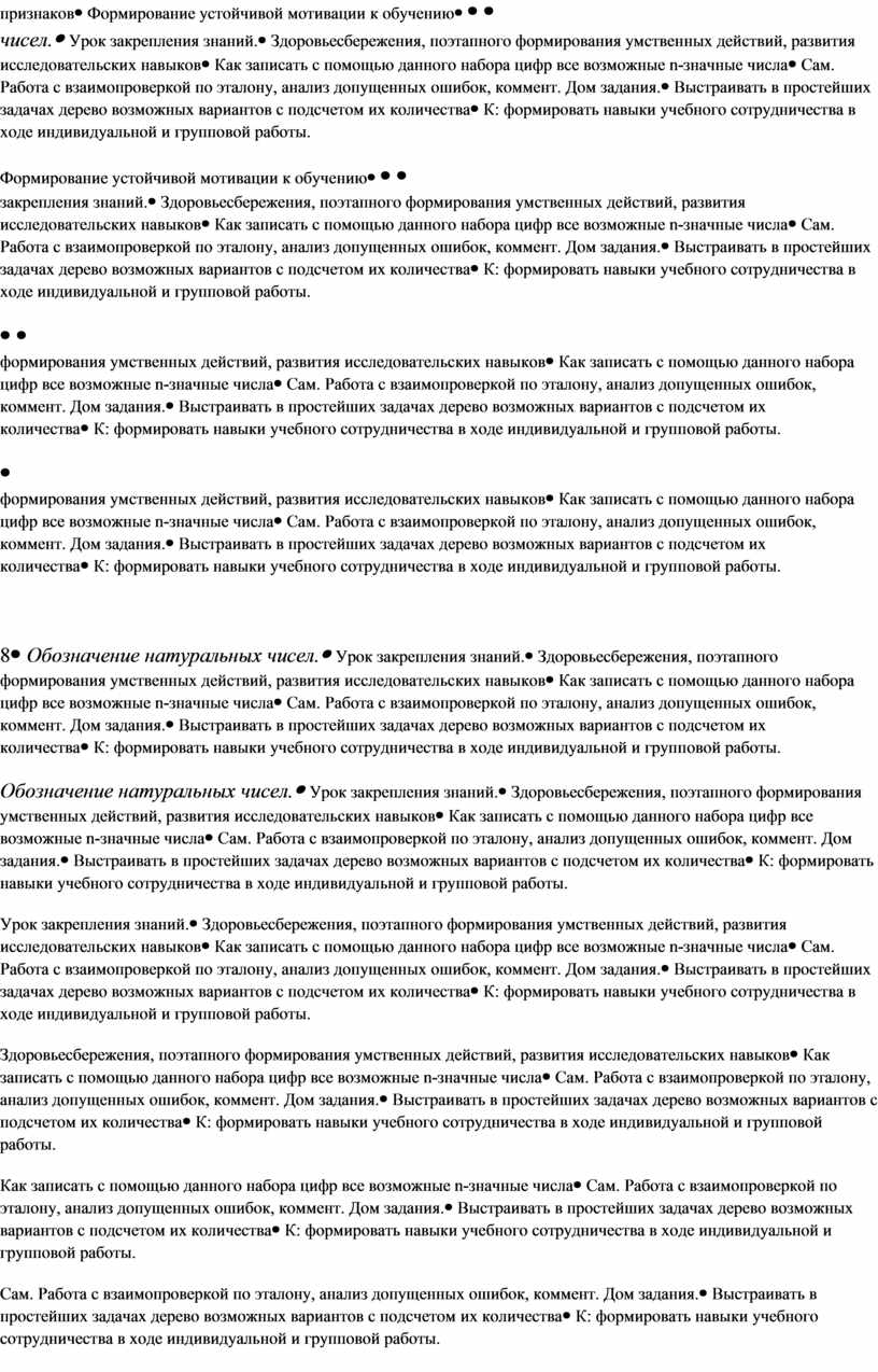 Систематизация сведений о натуральных числах позволяет восстановить у обучающихся навыки чтения и записи многозначных чисел, сравнения натуральных чисел, а также навыки измерения и построения отрезков. Рассматриваются простейшие комбинаторные задачи. В ходе изучения темы вводятся понятия координатного луча, единичного отрезка и координаты точки. Здесь начинается формирование таких важных умений, как умения начертить координатный луч и отметить на нем заданные числа, назвать число, соответствующее данному делению на координатном луче.