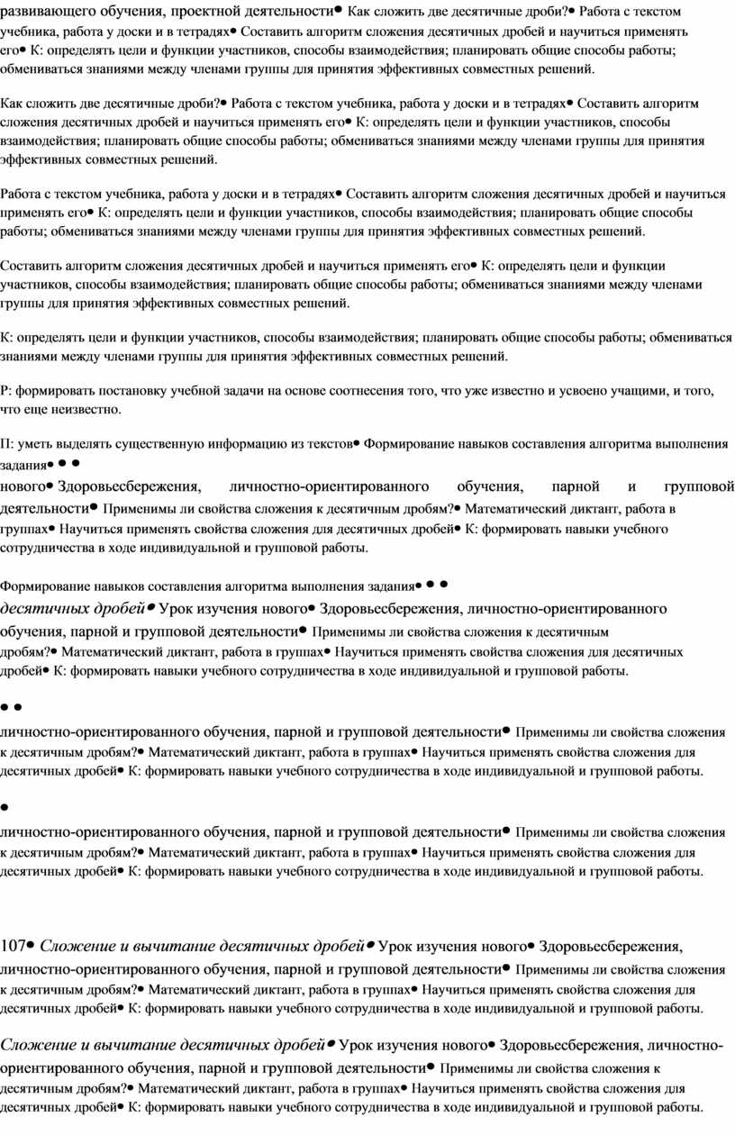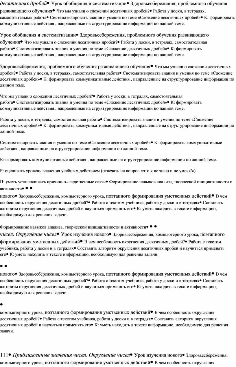 При введении десятичных дробей важно добиться у обучающихся четкого представления о десятичных разрядах рассматриваемых чисел, умений читать, записывать, сравнивать десятичные дроби. Подчеркивая сходство действий над десятичными дробями с действиями над натуральными числами, отмечается, что сложение десятичных дробей подчиняется переместительному и сочетательному законам. Определенное внимание уделяется решению текстовых задач на сложение и вычитание, данные в которых выражены десятичными дробями. При изучении операции округления числа вводится новое понятие — «приближенное значение числа», отрабатываются навыки округления десятичных дробей до заданного десятичного разряда.
