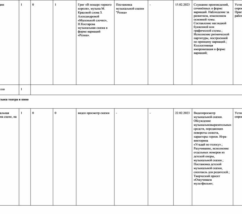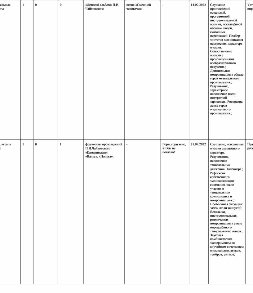 г) Музыкальное движение (пластическое интонирование, танец, двигательное моделирование и др.); д) Исследовательские и творческие проекты.
