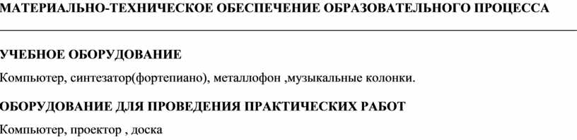 Компьютер, синтезатор(фортепиано), металлофон ,музыкальные колонки.