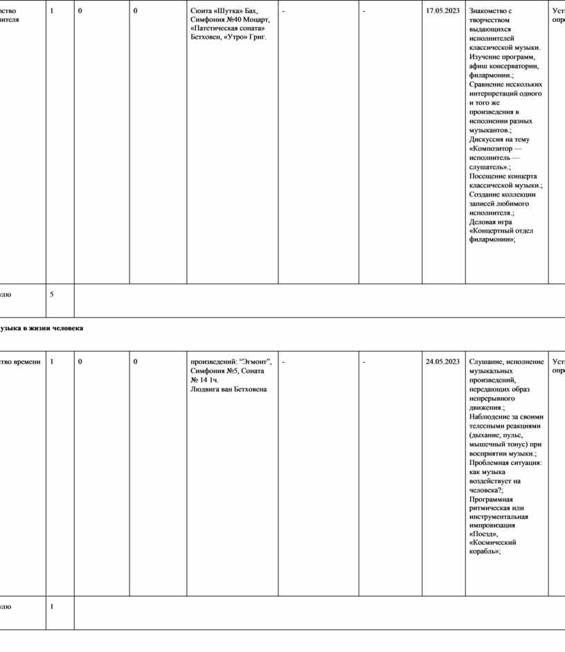 Сюита «Шутка» Бах, Симфония №40 Моцарт, «Патетическая соната» Бетховен, «Утро» Григ. |