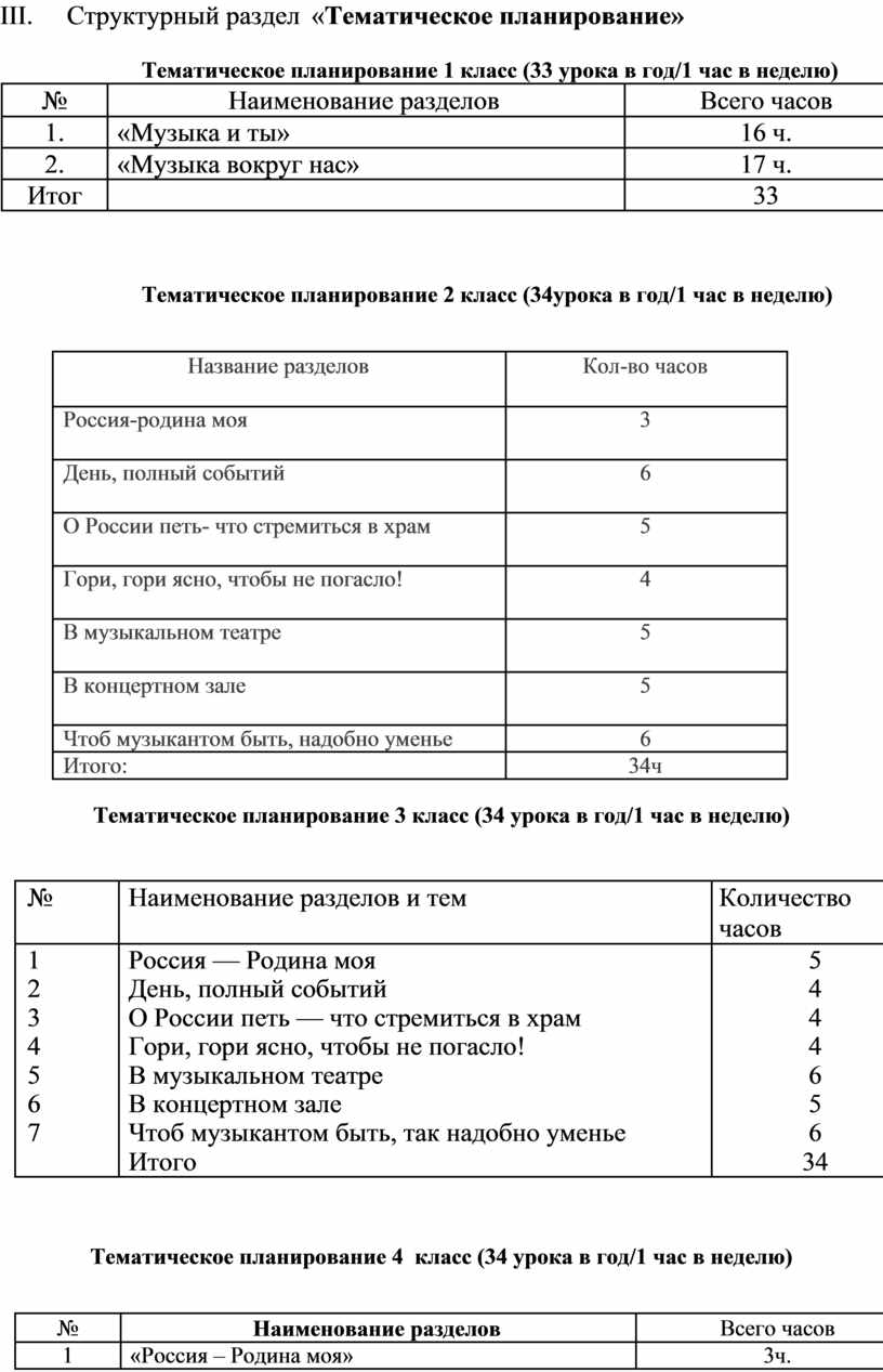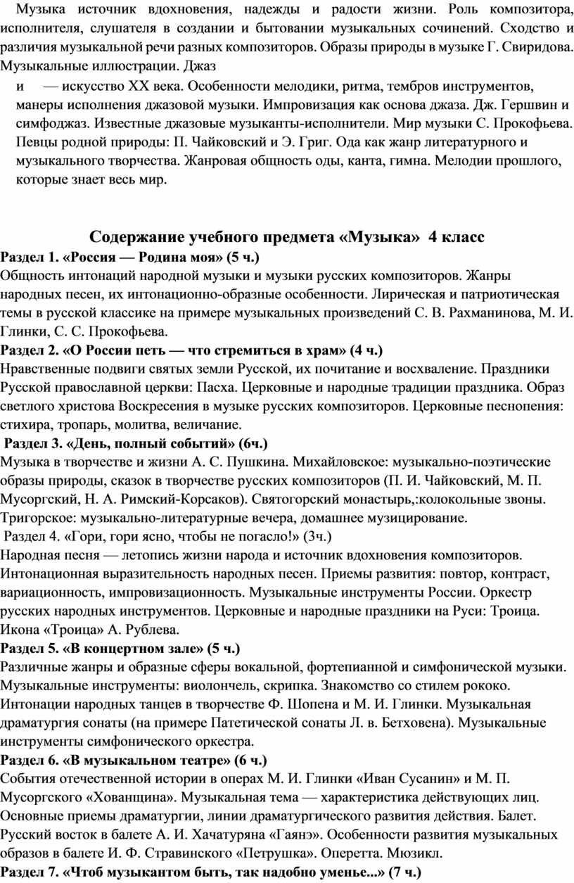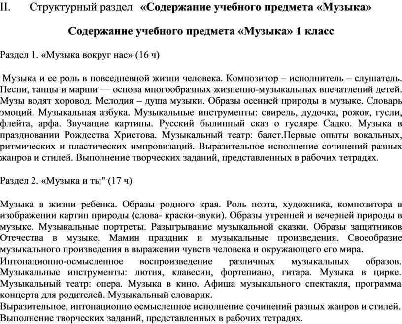II. Структурный раздел «Содержание учебного предмета «Музыка»
