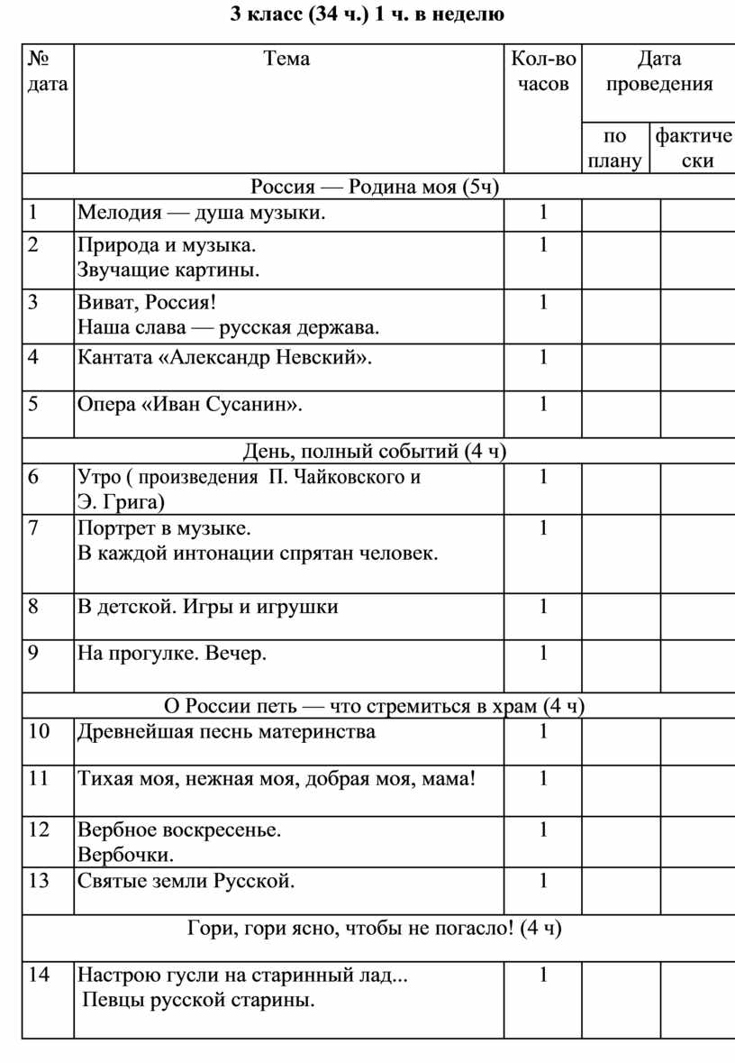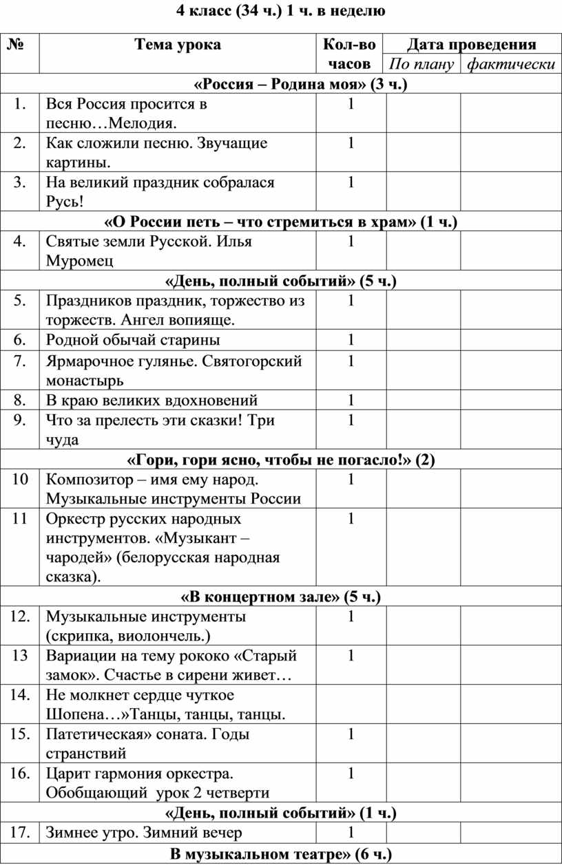 4 класс (34 ч.) 1 ч. в неделю