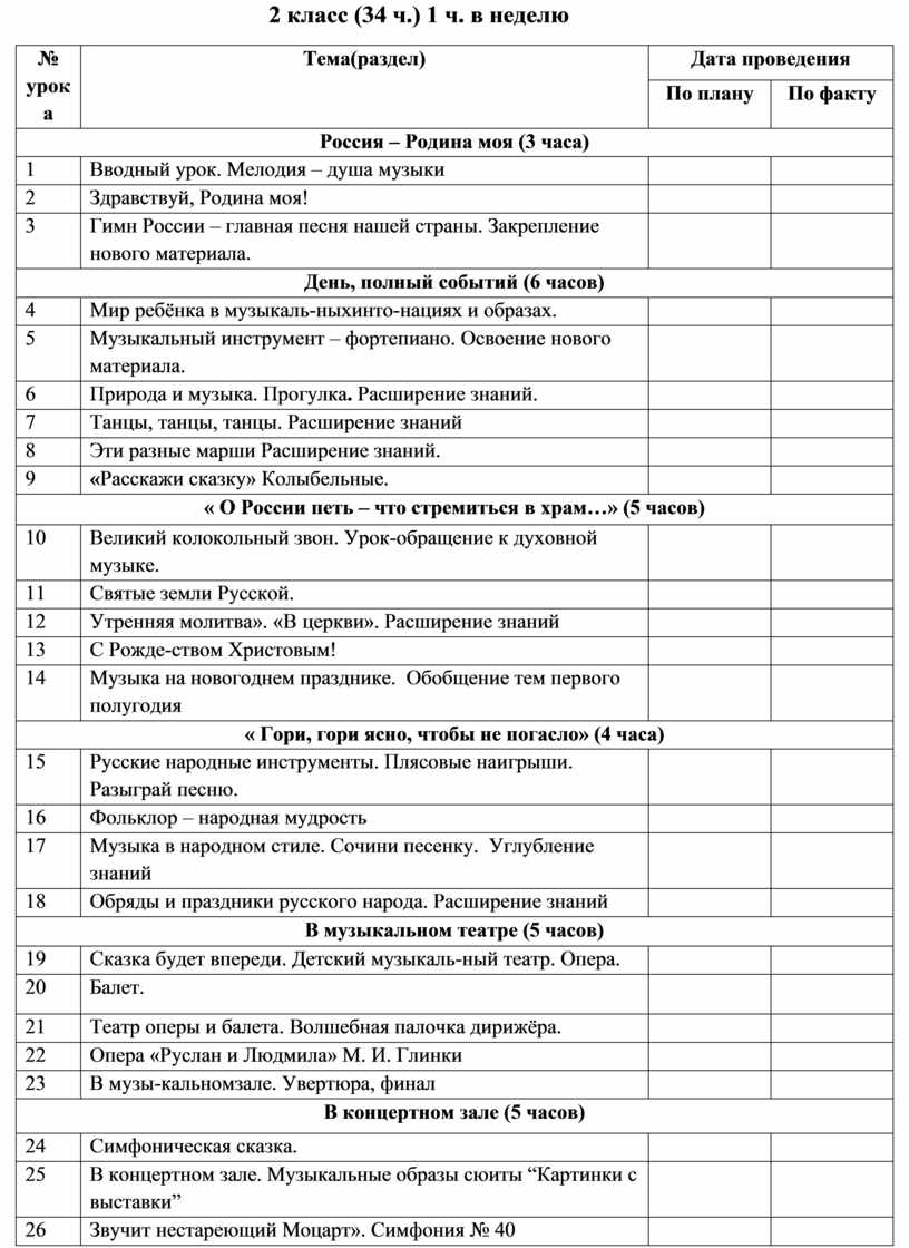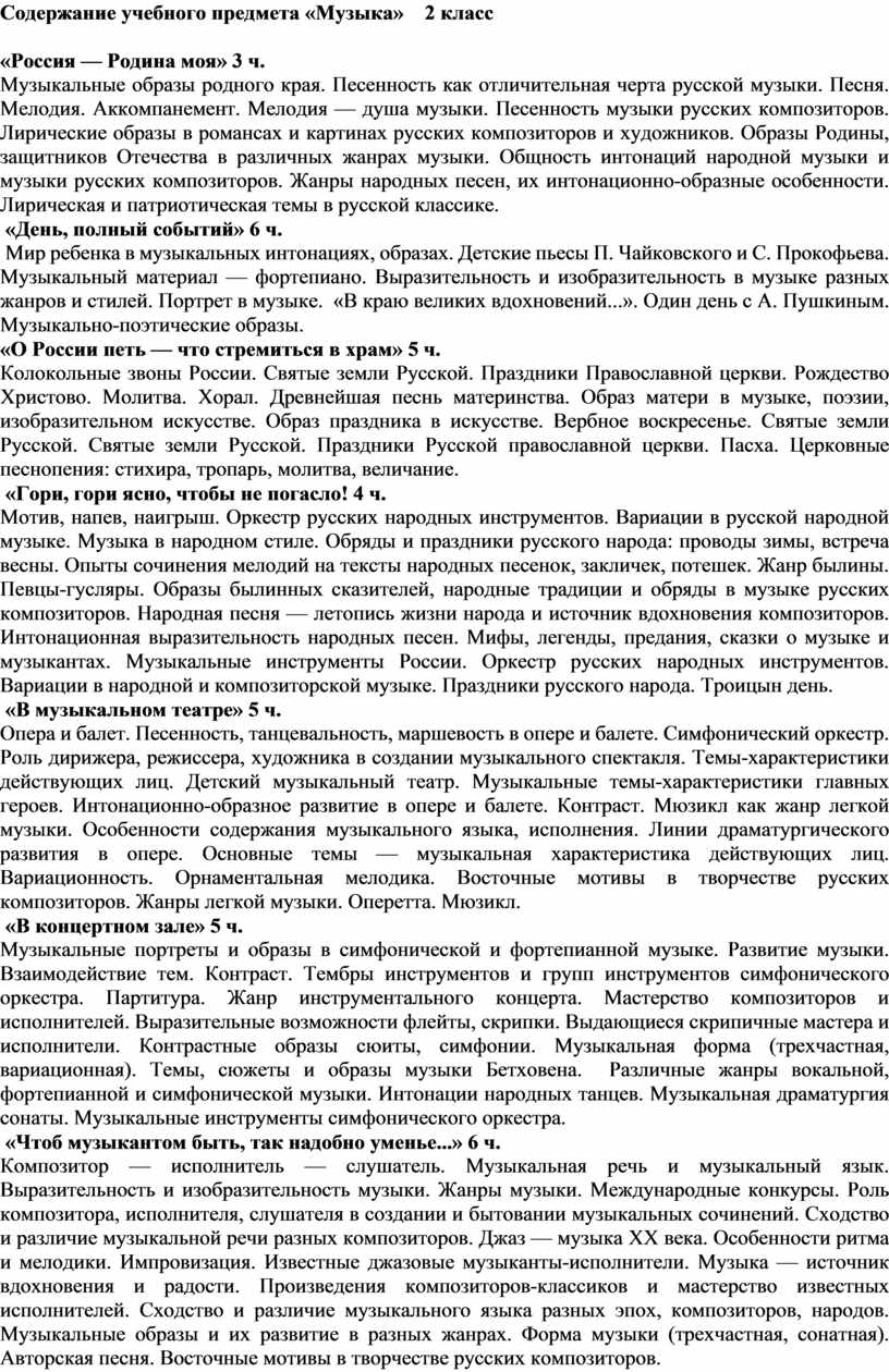Содержание учебного предмета «Музыка» 2 класс