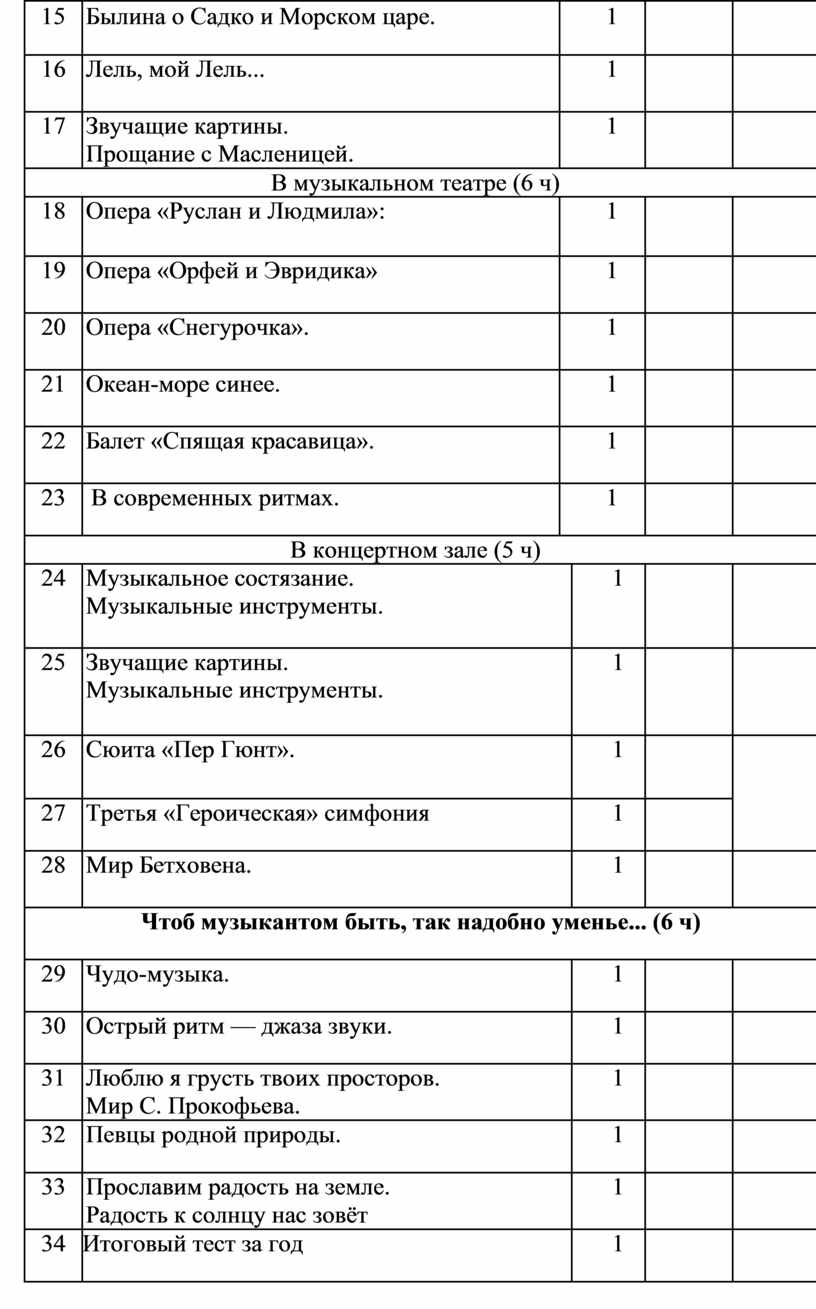 В музыкальном театре» (6 ч.) |