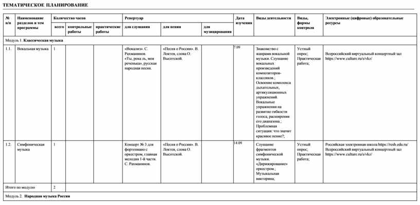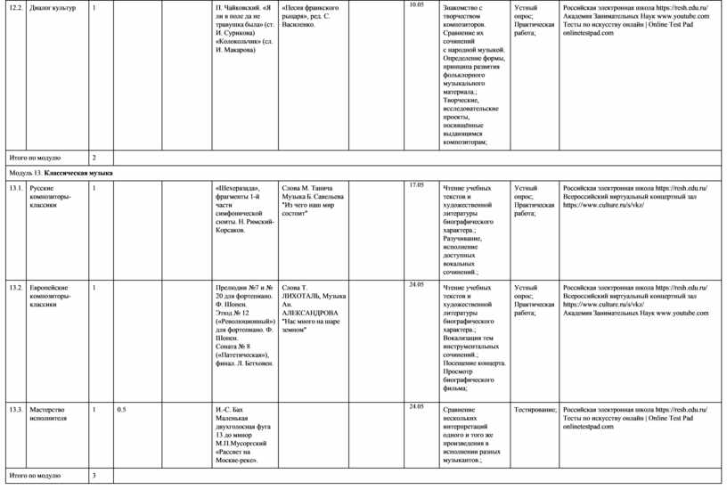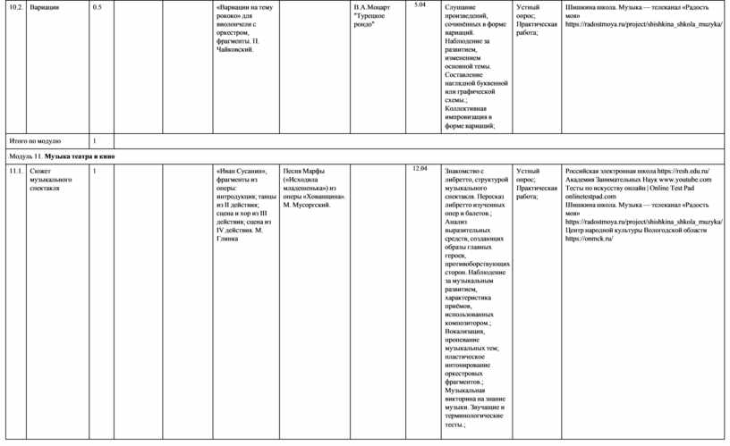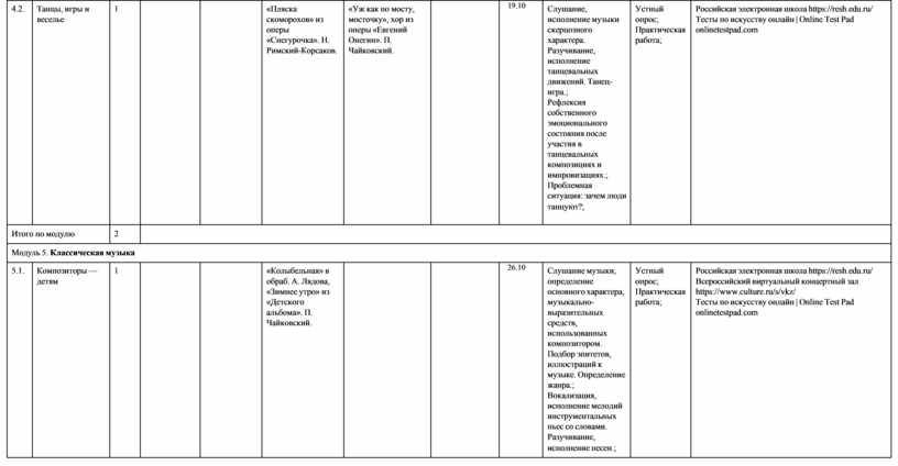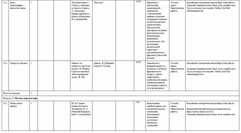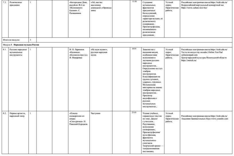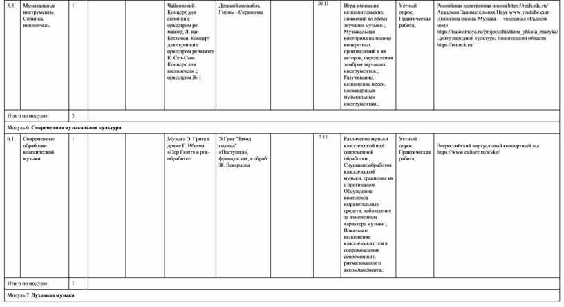 модуль № 6 «Современная музыкальная культура»; модуль № 7 «Музыка театра и кино»;