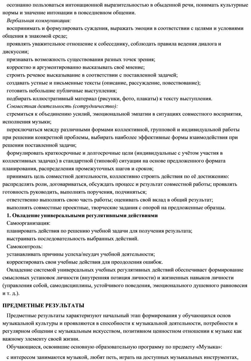 2) развитие потребности в общении с произведениями искусства, осознание значения музыкального искусства как универсального языка общения, художественного отражения многообразия жизни;