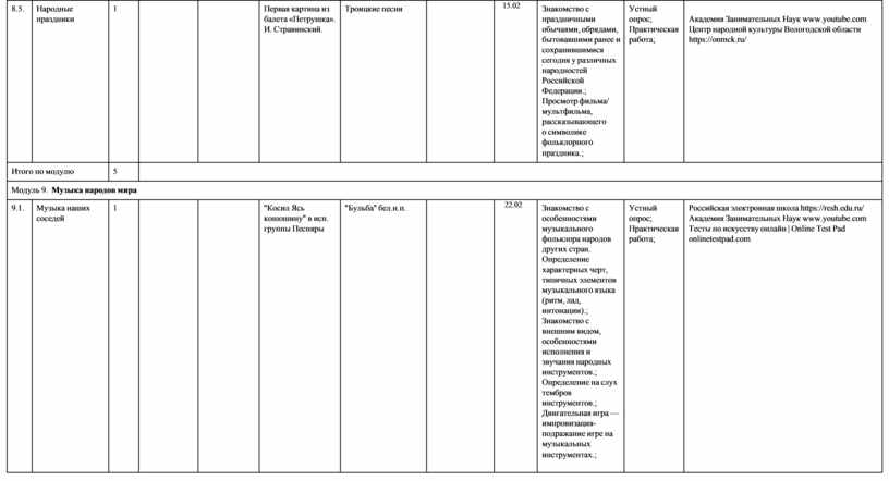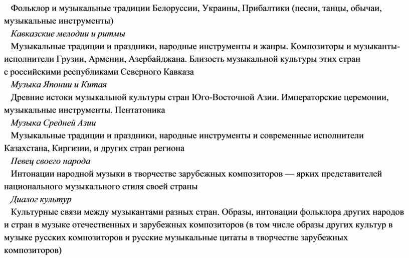 8. Расширение кругозора, воспитание любознательности, интереса к музыкальной культуре других стран, культур, времён и народов.