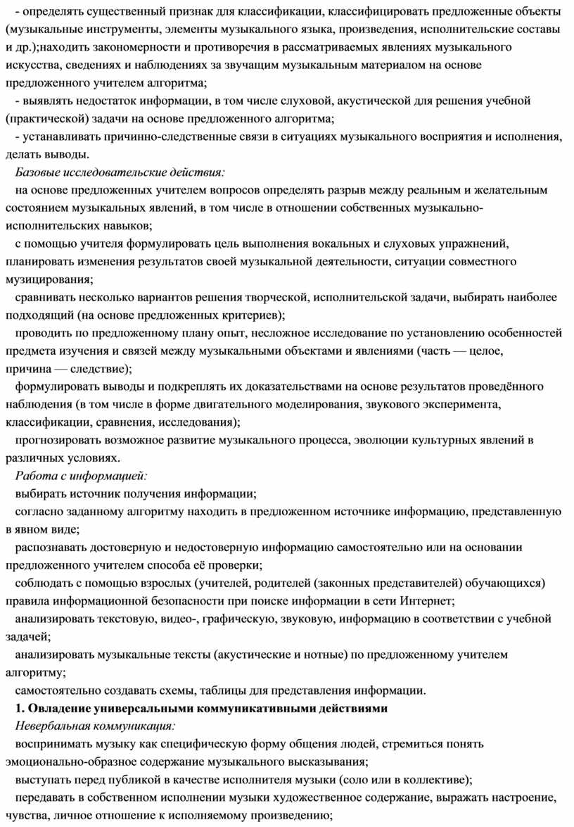 б) Исполнение (пение, игра на доступных музыкальных инструментах); в) Сочинение (элементы импровизации, композиции, аранжировки);