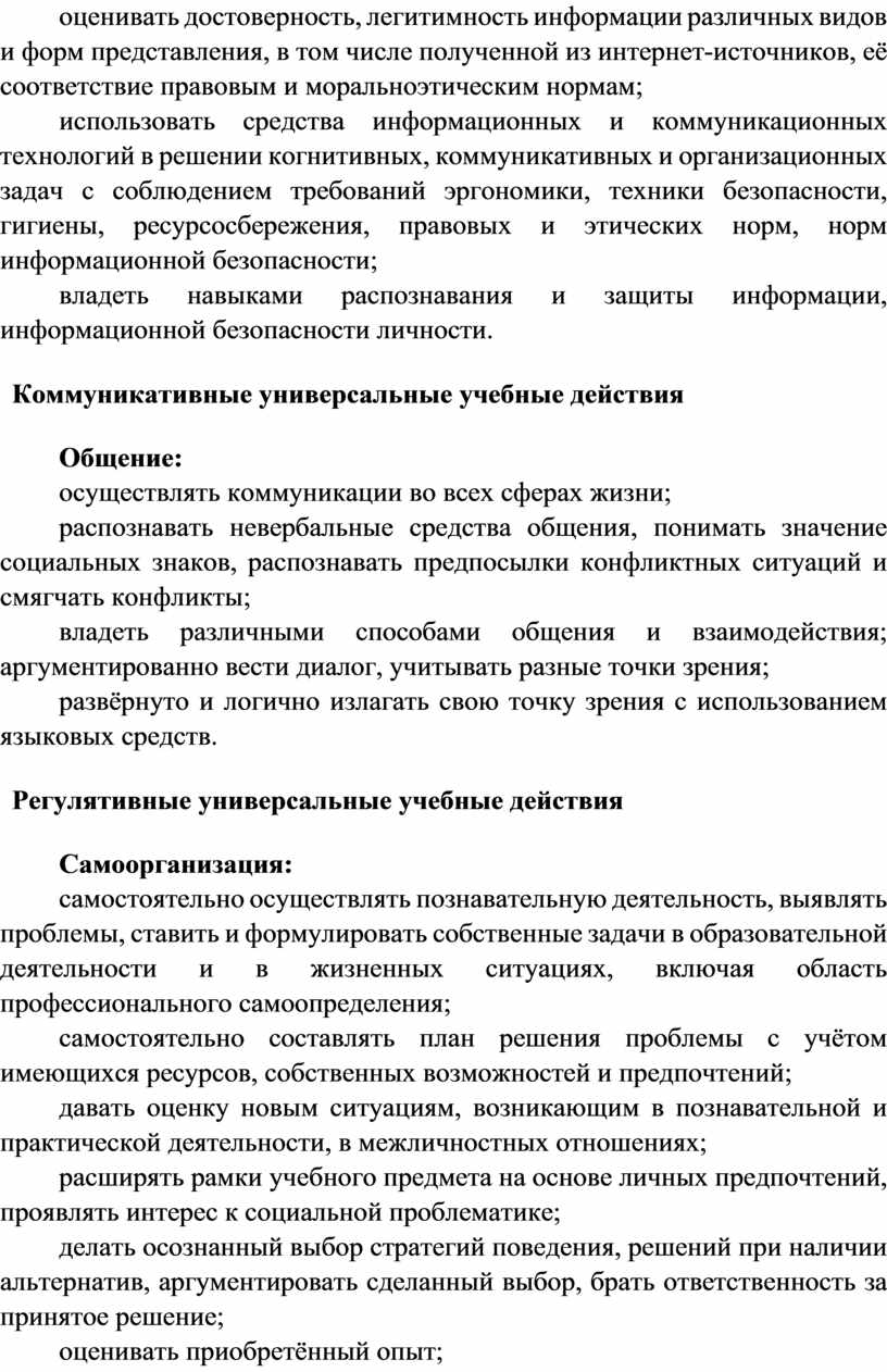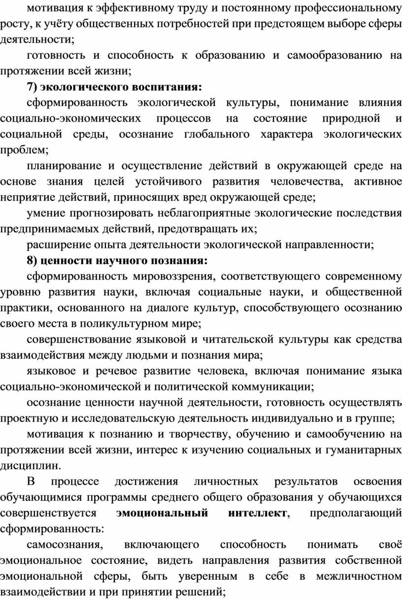 развитие духовнонравственных позиций и приоритетов личности в период ранней юности, правового сознания, политической культуры, экономического образа мышления, функциональной грамотности, способности к предстоящему самоопределению в различных областях жизни: семейной, трудовой, профессиональной;