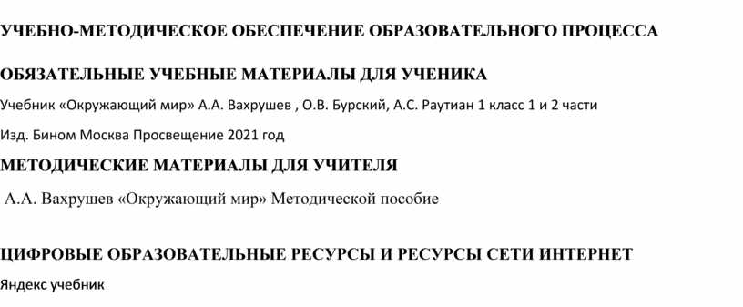 ОБЯЗАТЕЛЬНЫЕ УЧЕБНЫЕ МАТЕРИАЛЫ ДЛЯ УЧЕНИКА