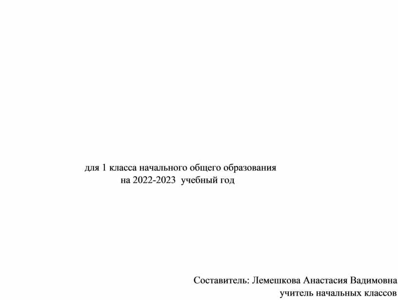 Составитель: Лемешкова Анастасия Вадимовна учитель начальных классов